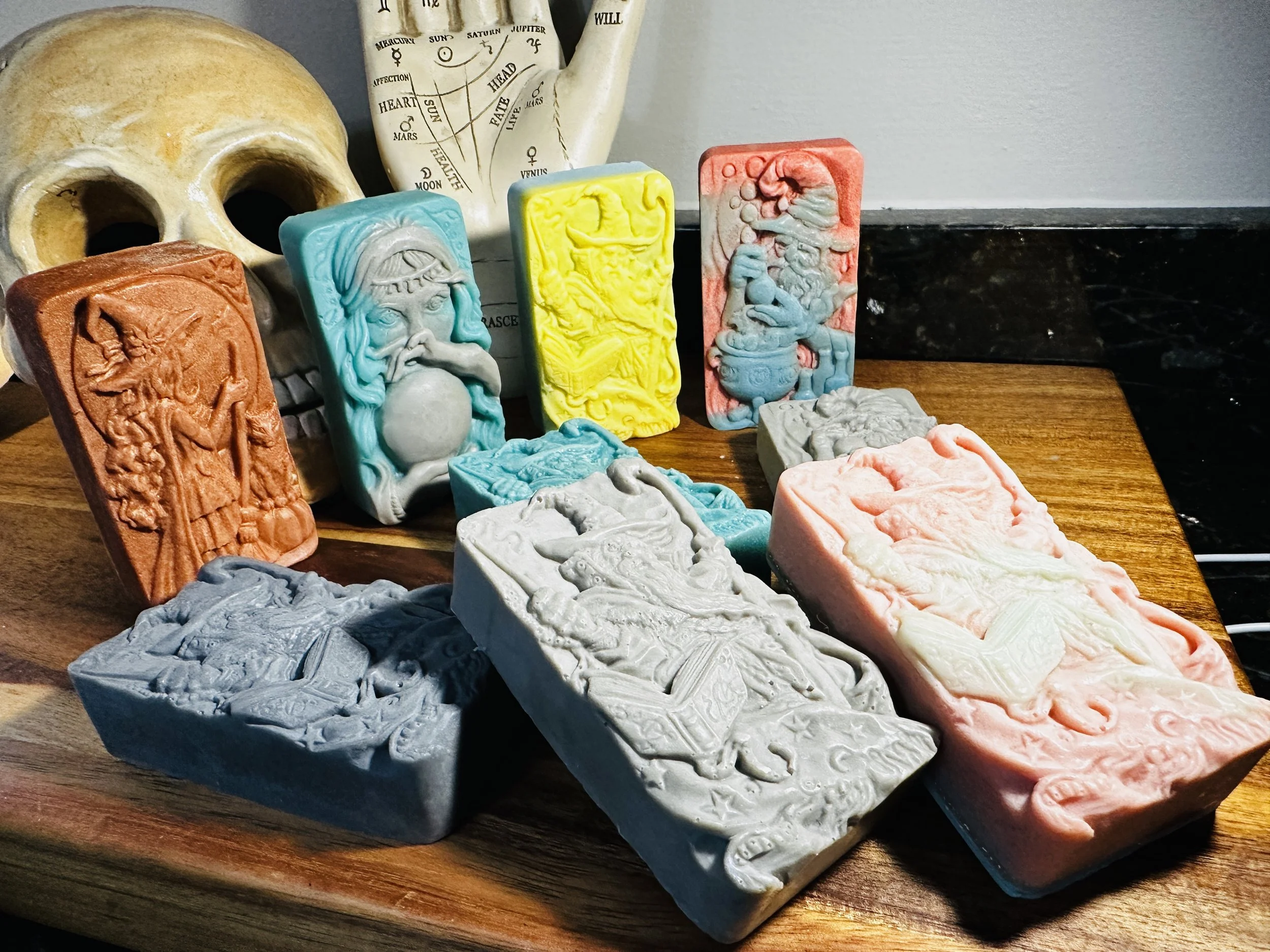 Mystical. 4 designs to choose from including Fortune teller, Teen witch, Wizard with book or Wizard with cauldron. All soaps are handmade.